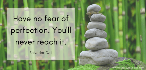 There is nothing wrong with being happy with what you’ve accomplished and seeing it in the perfection of the moment. That’s a very joyful thing, however, it is important to realise that perfection is not a realistic reachable goal, and it should never become an obsession. When we start to feel we want to control everything, that’s when we get ourselves into trouble and have to do some serious work on letting go. But having said that, never fear perfection either for as Salvador Dali said, ‘you’ll never reach it!’