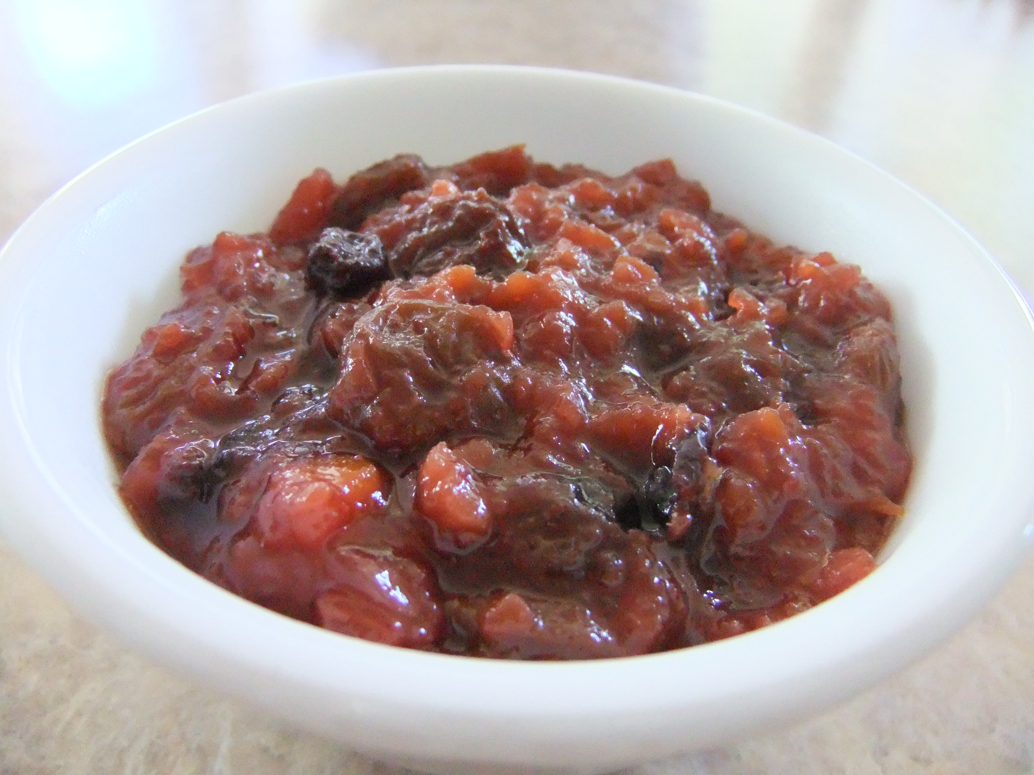 I specifically chose this recipe because I didn’t have to do any peeling ~ that would have tipped me over the edge! This chutney has a definite kick to it, and because it’s tart, I made some adjustments (as I always do with any recipe that comes my way), but it’s delicious!